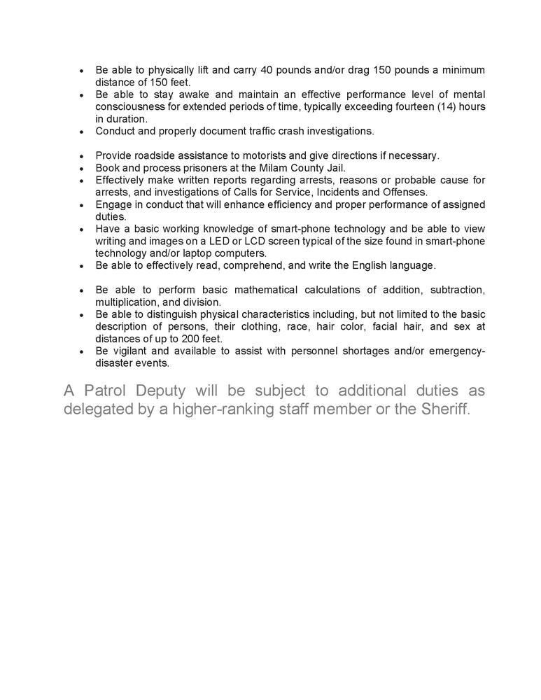 Patrol Deputy Positions Open Milam County Sheriff's Office (10/05 Milam County Sheriff Jobs announcement of job opening. Fill out form, print and sign. the milam county sheriff's office is taking applications for the following jail positions: milam county job application form. notice of job opening. announcement of job opening. Milam county sheriff’s office date of. The jailer has the responsibility to provide care and protection to the inmates. Milam County Sheriff Jobs.